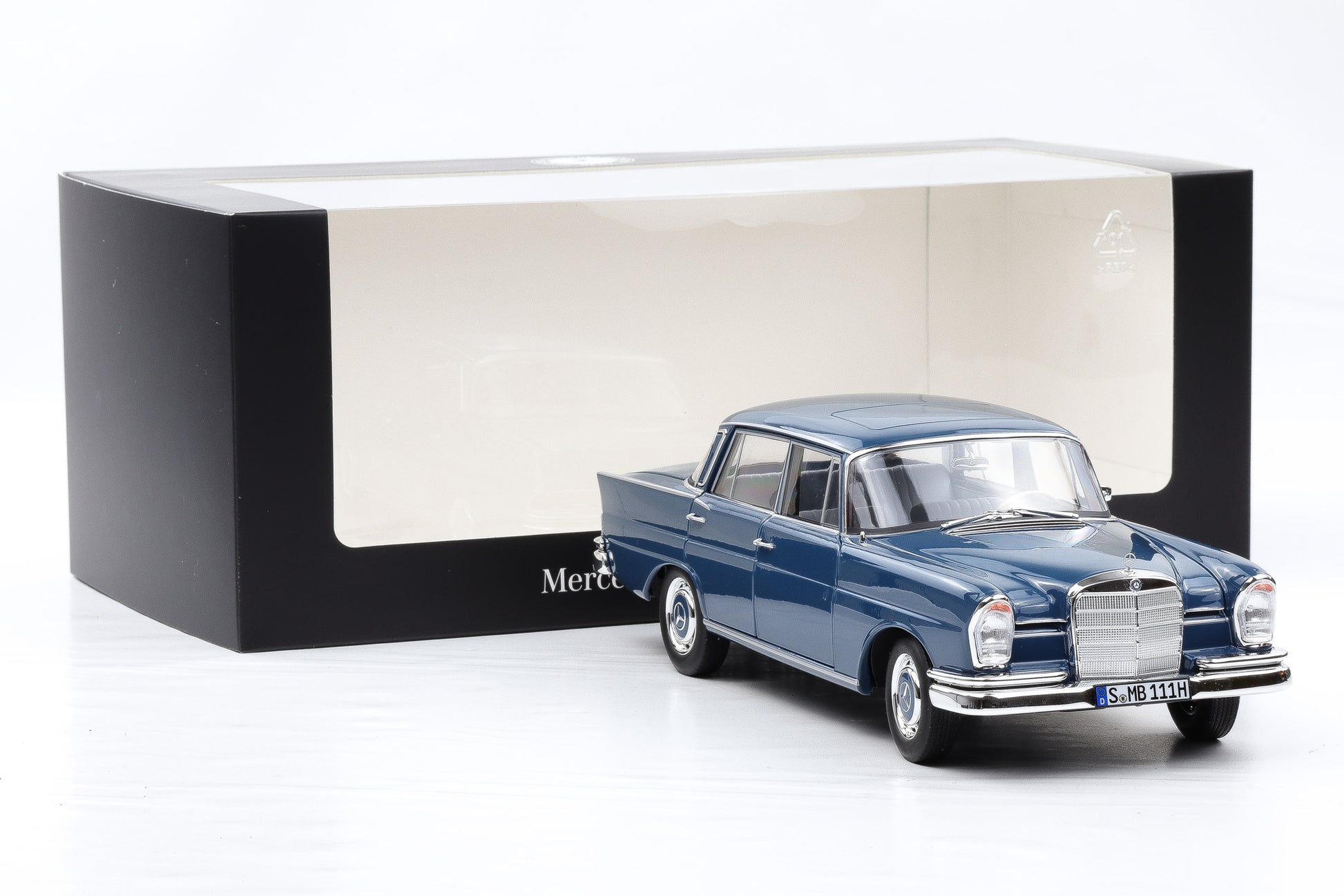 1:18 Norev Mercedes-Benz 220S W111 blau full opening Dealer + Vitrine