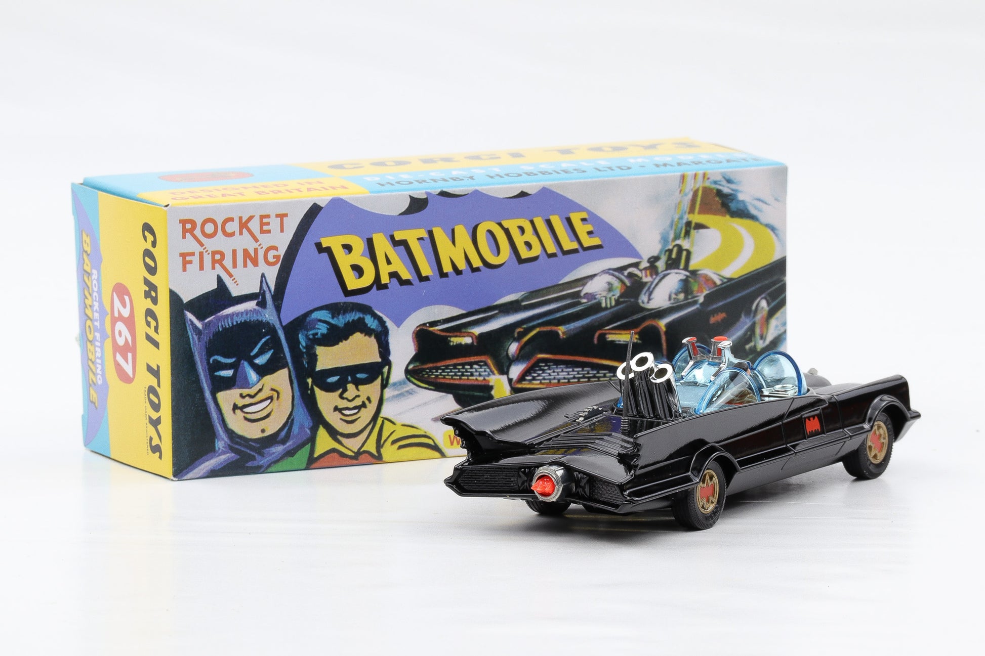 Corgi Toys Batmobile Rocket Firing Batmobile with Batman and Robin Nr. 267 Repro 1:50