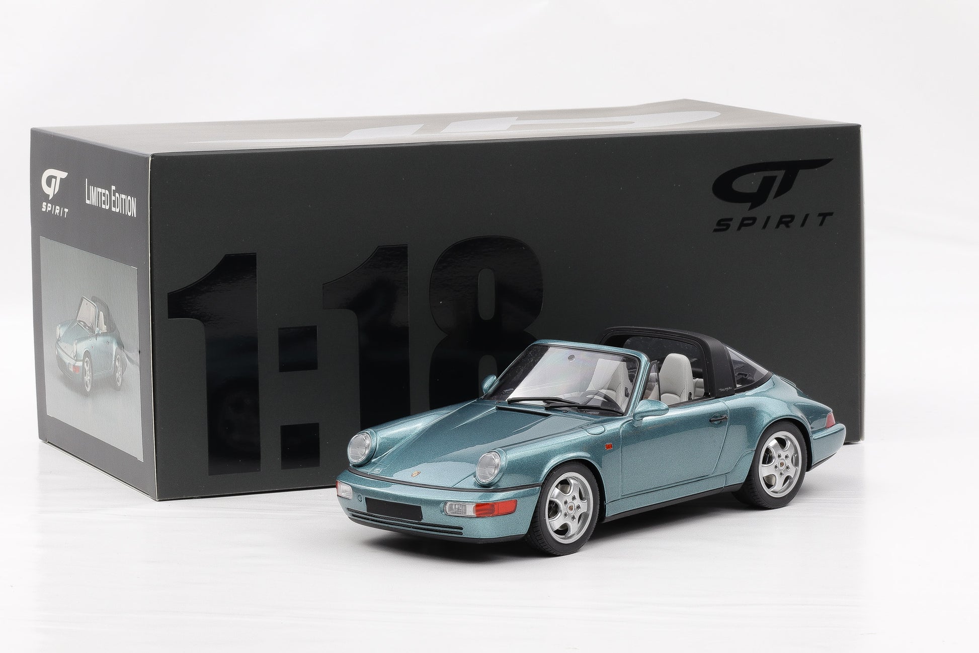 1:18 GT Spirit Porsche 911 964 Targa 1991 türkis metallic GT805 mit Vitrine